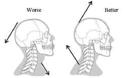 Dans cette translation le menton rentre vers le haut vers l’arrière, suivant le sommet du crâne. Le torse se bombe maintenant un dos droit et une colonne vertébrale non compressée.