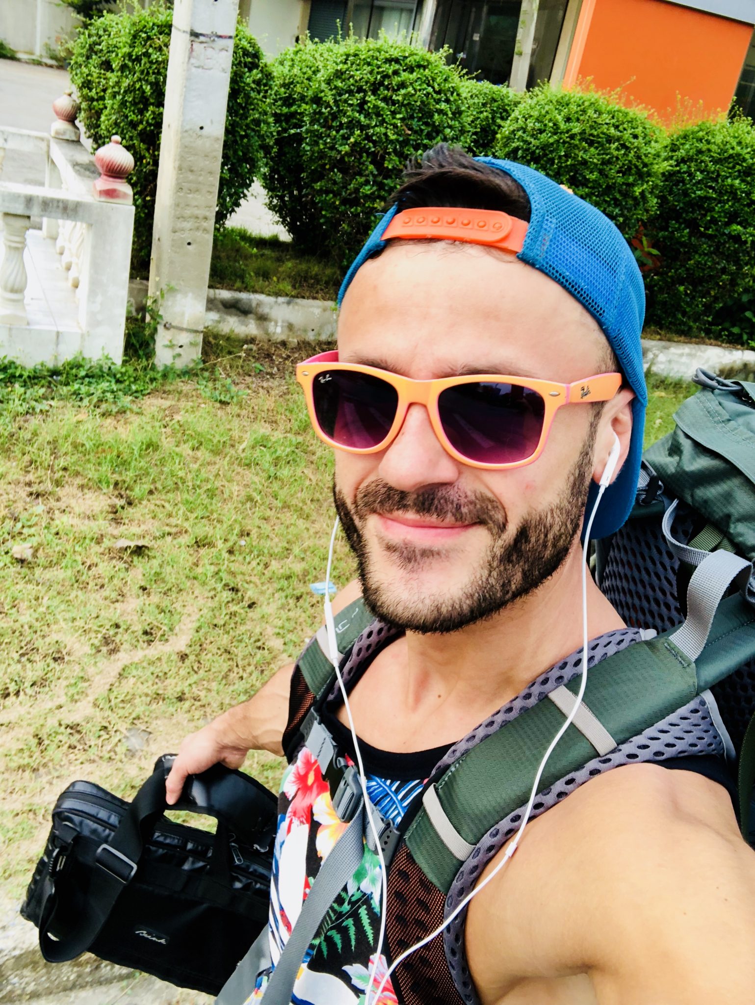 29/03/2018, arrivée à Bangkok où il fait un bon 40*C et une humidité incroyable. Je suis tellement motivé par ce voyage et heureux de repartir à l’aventure que je traverse une bonne partie de la ville (immense) en marchant en plein après-midi, 12 kg sur le dos (chargement de 10kg + sacoche ordinateur, hard drive, selfie-stick, lol, etc) #faudrabosserquandmêmeunpeu. L’entraînement vient de commencer. L’aventure aussi !