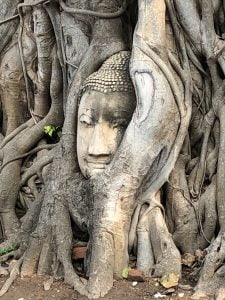 Ayutthaya vaut le détour. Non pas la ville en elle-même mais ses ruines. Je suis sous le charme des temples anciens. Des vieilles pierres chargées d’histoire. Un premier arrêt sur image et ce n’est pas un uppercut au menton que je viens de recevoir. Une profonde inspiration sort de ce lieu hors du temps, fondé sur une île, et m’enveloppe.